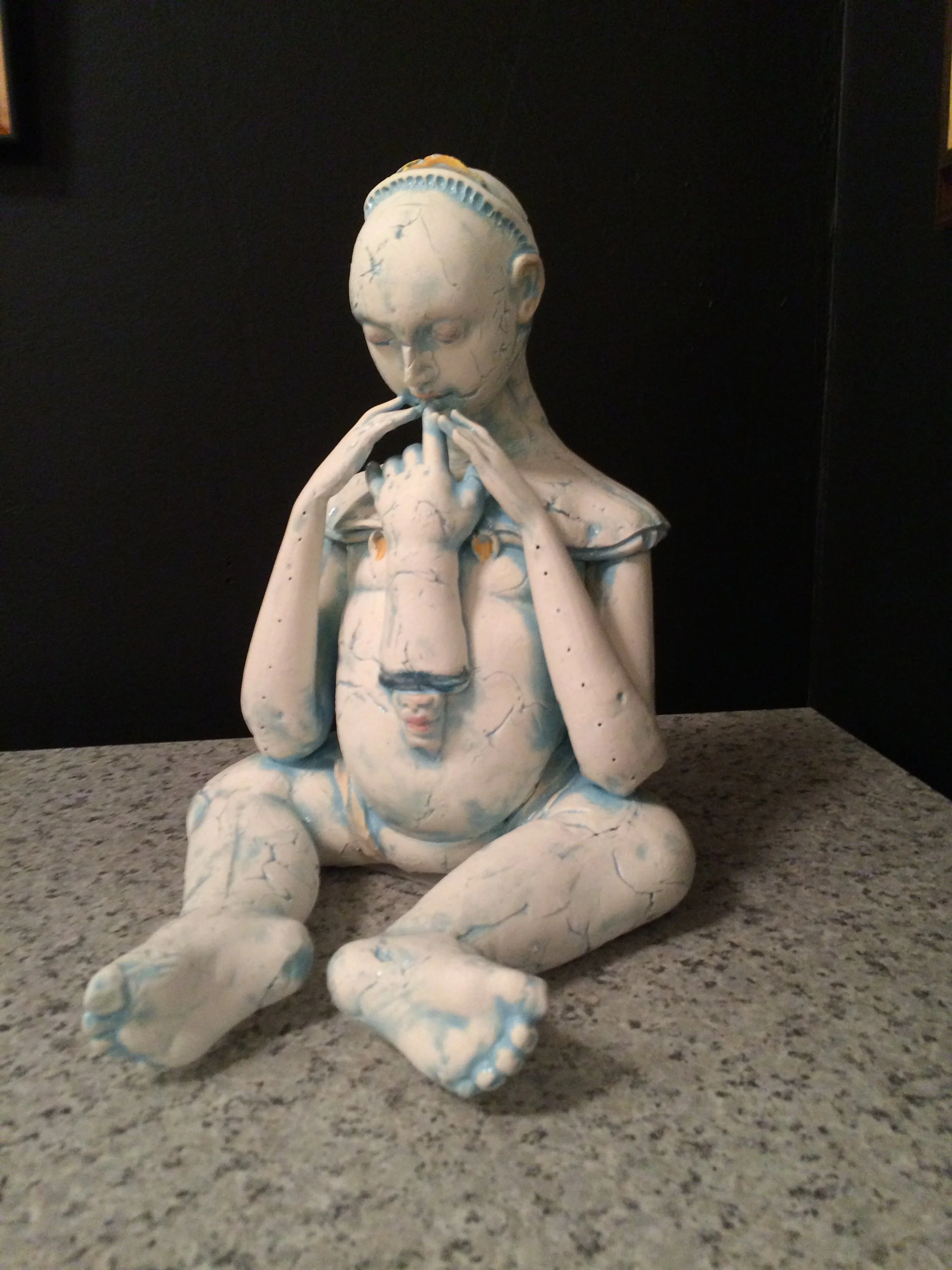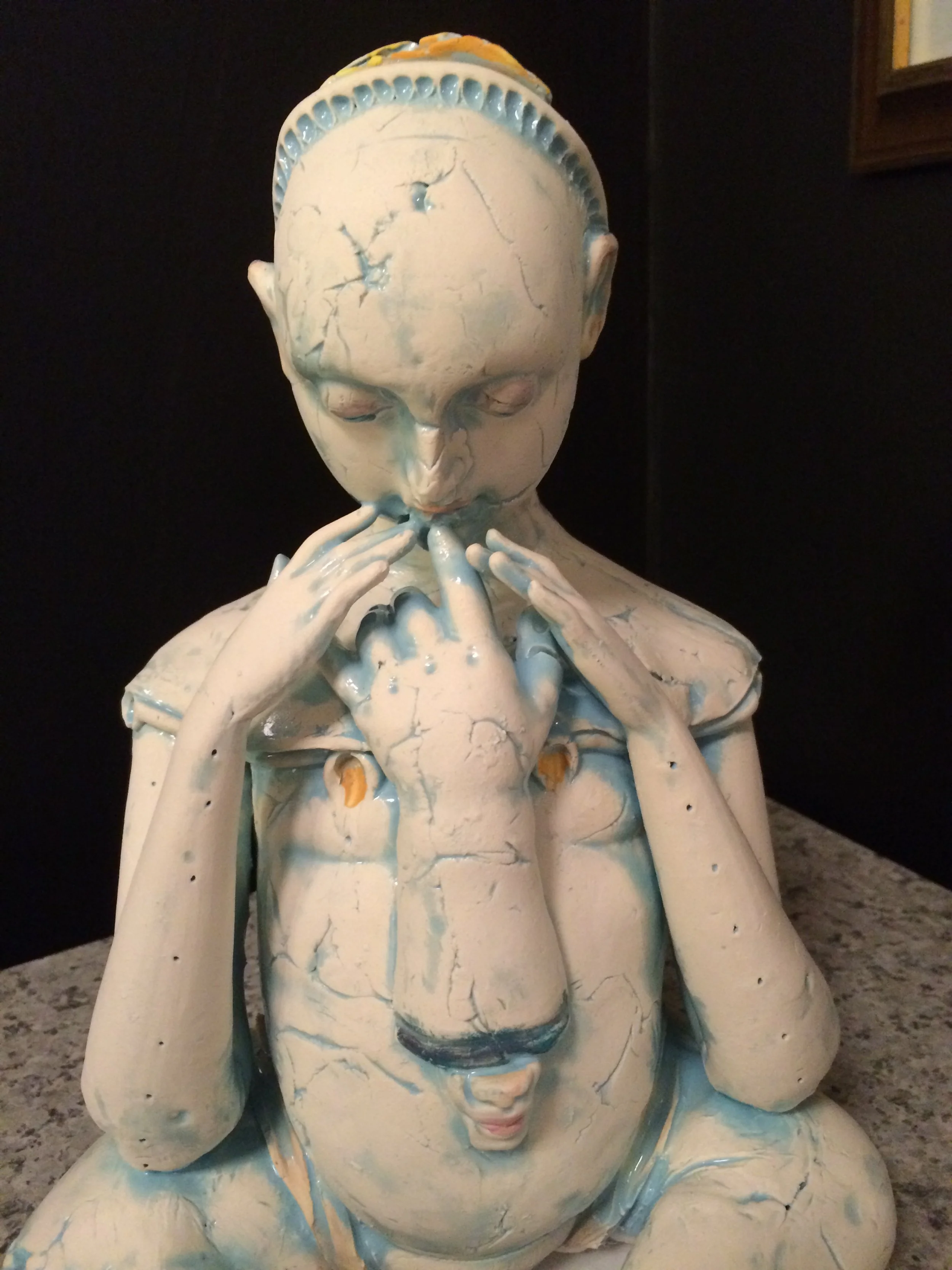 Kristen’s passion for pottery was ignited in Mrs. Marks’ art class at Elkhart Central High School. That love carried into many late nights in the pottery studio at Saint Mary’s College, graduating with a Bachelor of Fine Art degree. After college, she occasionally took pottery classes and workshops—finally fully returning to pottery at the Elkhart Art League at the suggestion of Anne Blackburn. Kristen equally enjoys throwing vessels on the wheel and hand building; often combining several techniques in building her work. She is a pottery tool and glaze hoarder who loves to alter pieces with carving, piercing, sgraffito, sculpting, and glaze combinations.